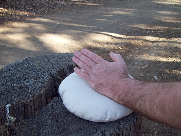 This bag is great to take on walks or hikes, first fill the bag with gravel or sand, then start tossing the bag and catching with your fingers while walking, this really builds up finger and forearm strength. You can also place the bag on a tree stump to practice Iron Palm drills, this is a another great way to build power and strength.