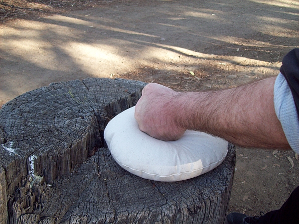 As you can see in the photos you can perform Iron Palm and hand conditioning exercises to strengthen your entire hands, wrists and forearms. From developing breaking ability, punching power to hit like a freight train or getting those Popeye like forearms, the Iron Palm Training Bag can be a great asset in your hand conditioning program.
